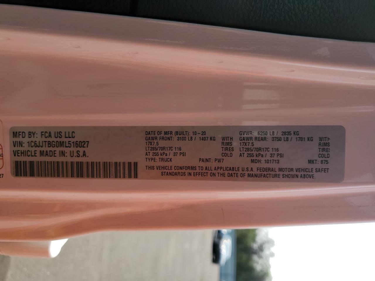 Колір БілийЦиліндри 6Привід 4x4 з заднім приводомVIN 1C6JJTBG0ML516027Стан Заводиться та їде (перевірено)Ушкодження Передня або задняДата аукціона 2025-10-13