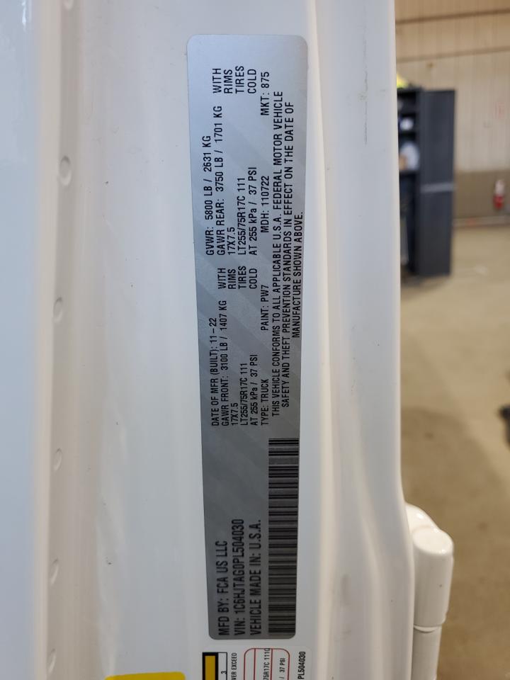 Колір БілийЦиліндри 6Привід 4x4 з заднім приводомVIN 1C6HJTAG0PL504030Стан ЗаводитьсяУшкодження Передня або задняДата аукціона 2025-10-07