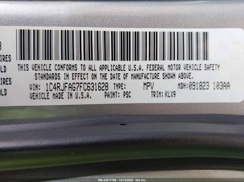 Колір СрібнийЦиліндри 6Привід Повний привідVIN 1C4RJFAG7FC631628Стан Заводиться та їде (перевірено)Ушкодження З боків