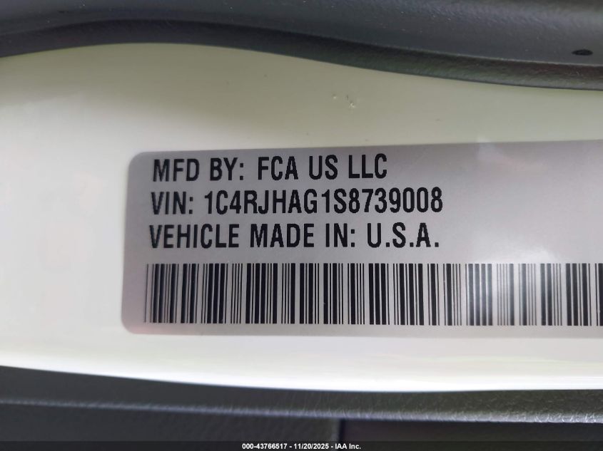 Колір Циліндри 6Привід Повний привідVIN 1C4RJHAG1S8739008Стан НевідомоУшкодження Невідомо