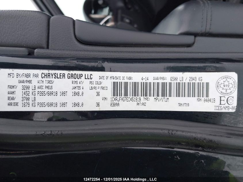 Колір ЧорнийЦиліндри 6Привід Повний привідVIN 1C4RJFAG7EC451919Стан Заводиться та їде (перевірено)Ушкодження НезначніДата аукціона 2025-12-15