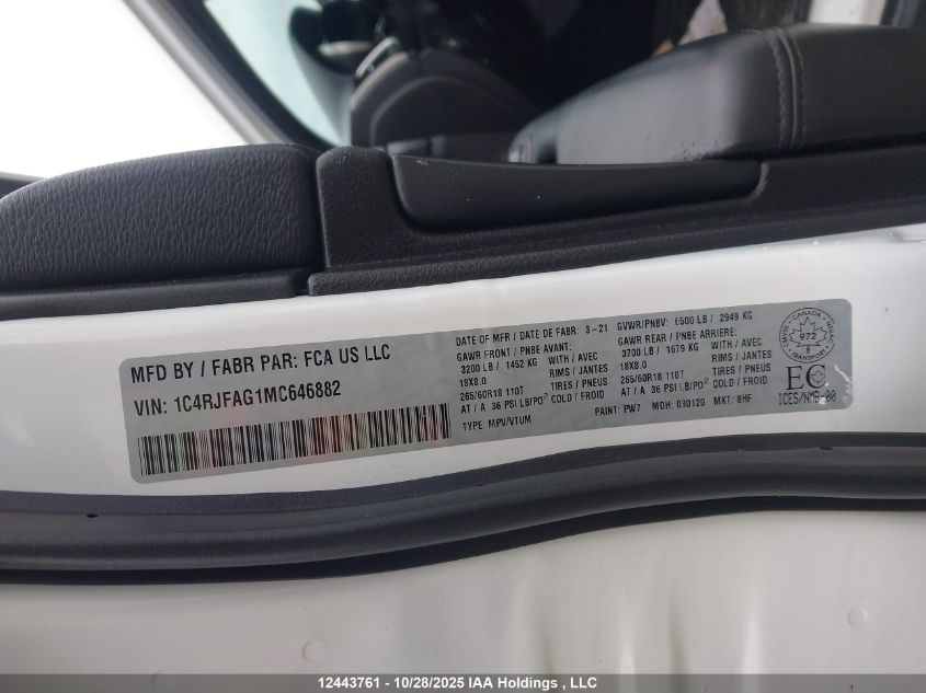 2021 JEEP GRAND CHEROKEE - 1C4RJFAG1MC646882, колір - Білий, , , Повний привід із США