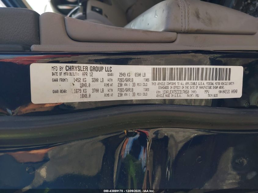 Колір СинійЦиліндри 8VIN 1C4RJEAT5CC317060Стан ЗаводитьсяУшкодження Передня ліва