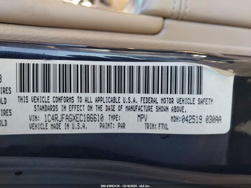 2014 JEEP GRAND CHEROKEE - 1C4RJFAGXEC186610, колір - Синій, 3.6, Бензин, Повний привід із США