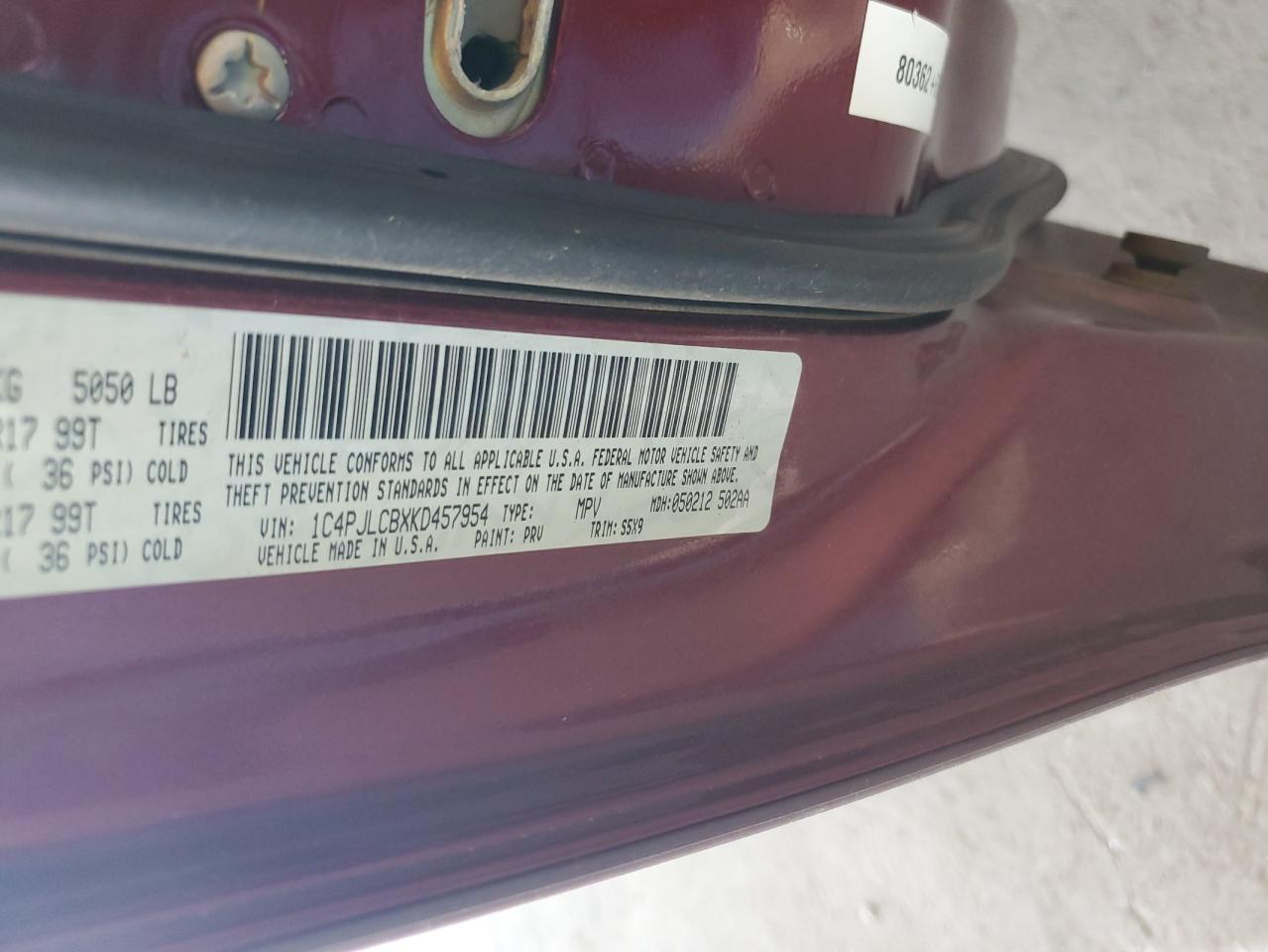 Колір БордовийЦиліндри 4VIN 1C4PJLCBXKD457954Стан Заводиться та їде (перевірено)Ушкодження Задня