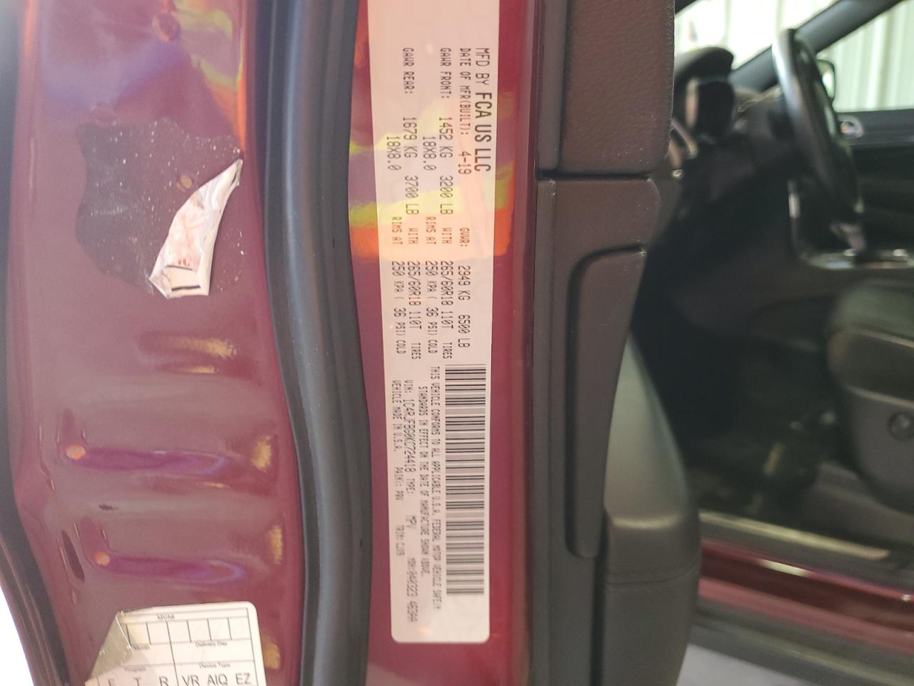 Колір БордовийЦиліндри 6Привід 4x4 з заднім приводомVIN 1C4RJFBG0KC724418Стан НевідомоУшкодження НезначніДата аукціона 2025-10-09