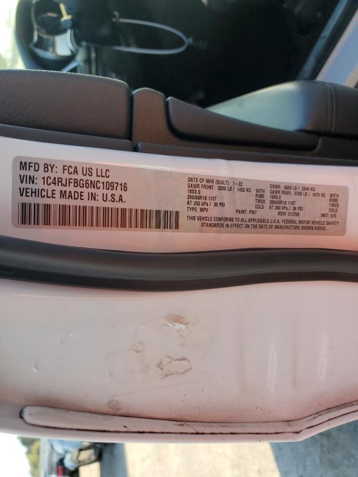2022 JEEP GRAND CHEROKEE - 1C4RJFBG6NC109716, колір - Білий, 3.6, Бензин, 4x4 з заднім приводом із США