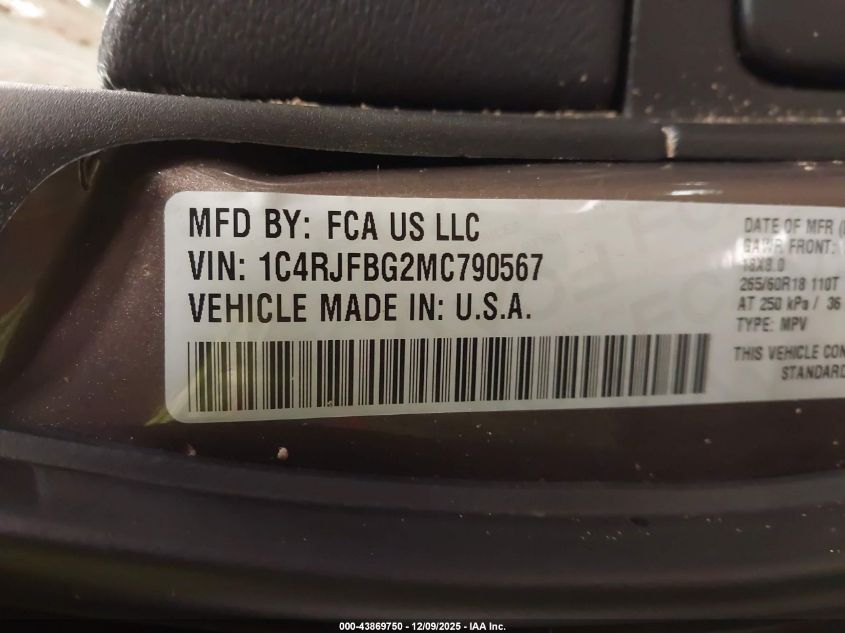 2021 JEEP GRAND CHEROKEE - 1C4RJFBG2MC790567, колір - Сірий, 3.6, Бензин, Повний привід із США