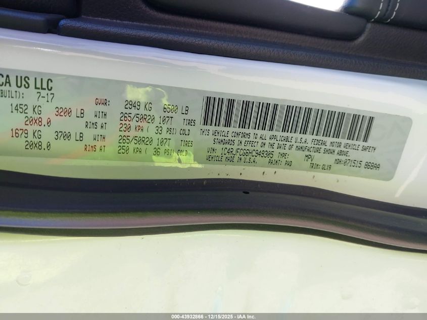 2017 JEEP GRAND CHEROKEE - 1C4RJFCG6HC949305, колір - Білий, 3.6, Бензин, Повний привід із США