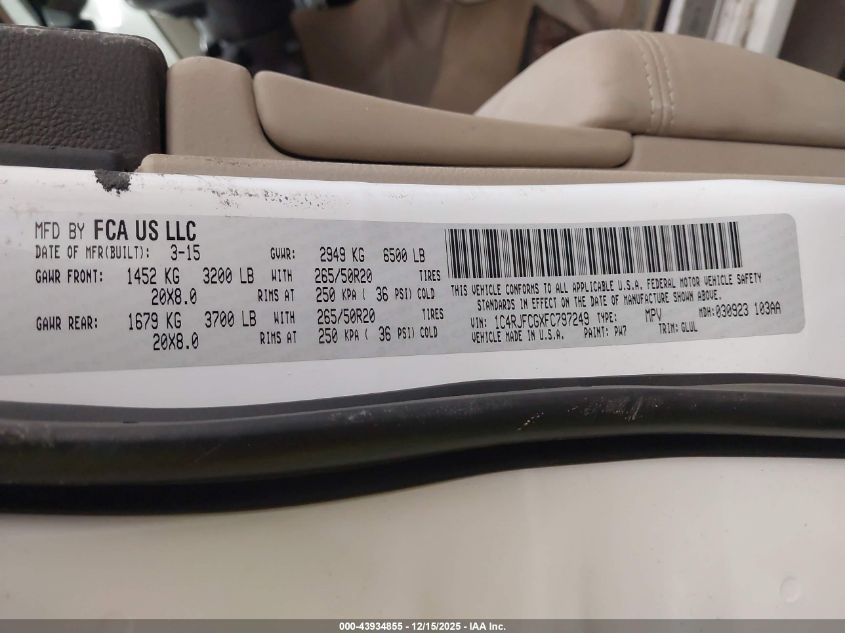 2015 JEEP GRAND CHEROKEE - 1C4RJFCGXFC797249, колір - Білий, 3.6, Бензин, Повний привід із США