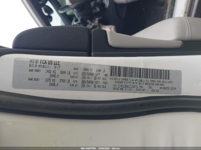 Колір БілийЦиліндри 6VIN 1C4RJEBG8JC124710Стан СтаціонарноУшкодження Передня або задня