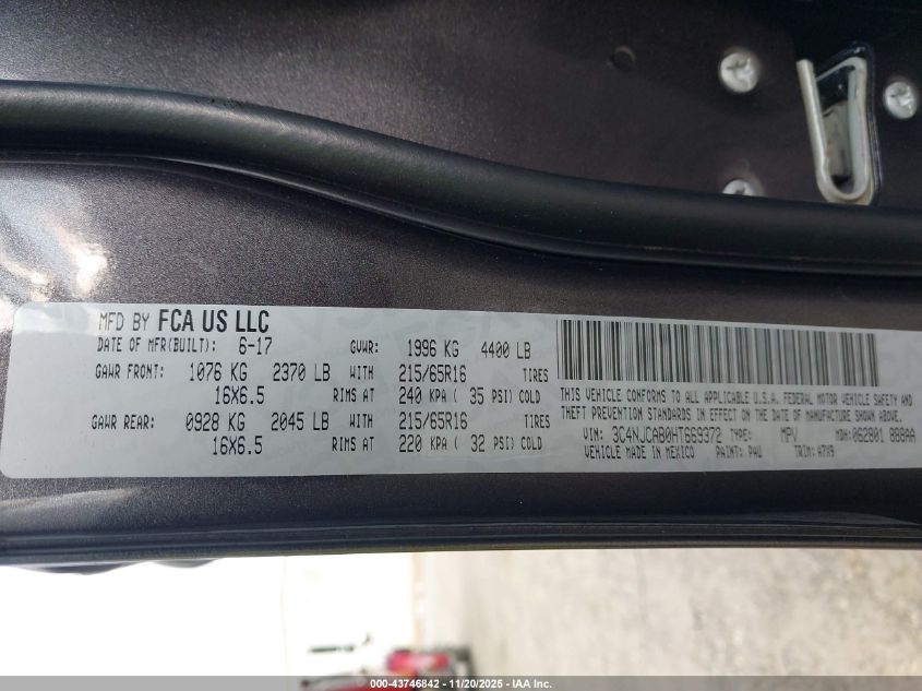 2017 JEEP NEW COMPASS - 3C4NJCAB0HT669372, колір - Олов`яний, 2.4, Бензин, Передній привід із США