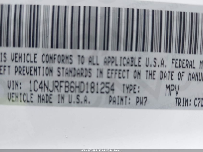 2017 JEEP PATRIOT - 1C4NJRFB6HD181254, колір - Білий, 2.4, Бензин, Повний привід із США