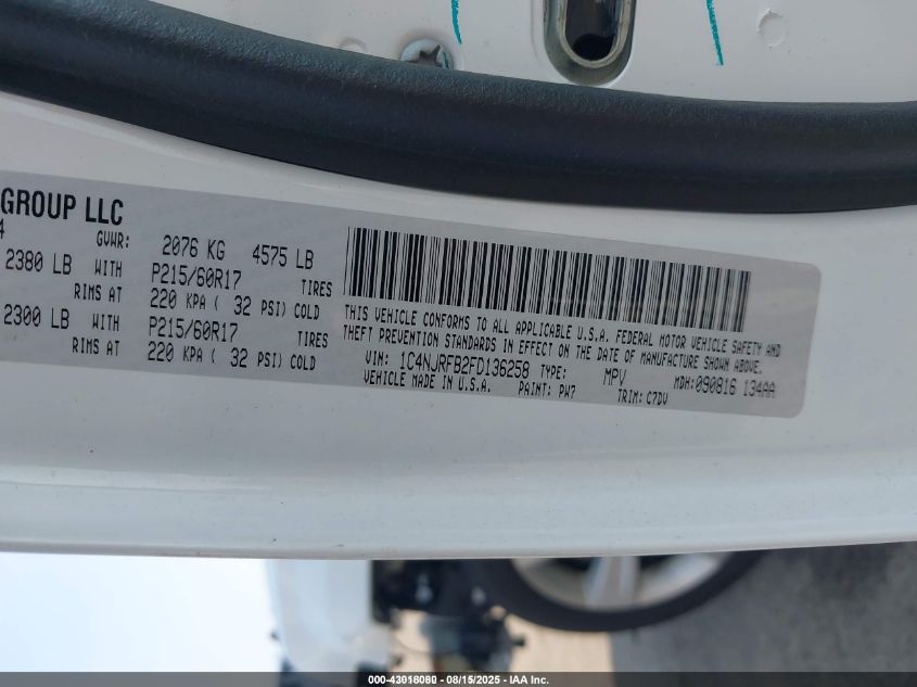 2015 JEEP PATRIOT - 1C4NJRFB2FD136258, колір - Білий, 2.4, Бензин, Повний привід із США