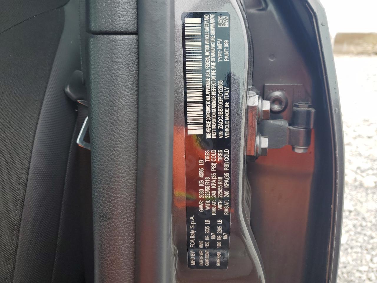 Колір СірийЦиліндри 4Привід 4x4 з переднім приводомVIN ZACCJBBT0GPD12966Стан НевідомоУшкодження Передня або задня