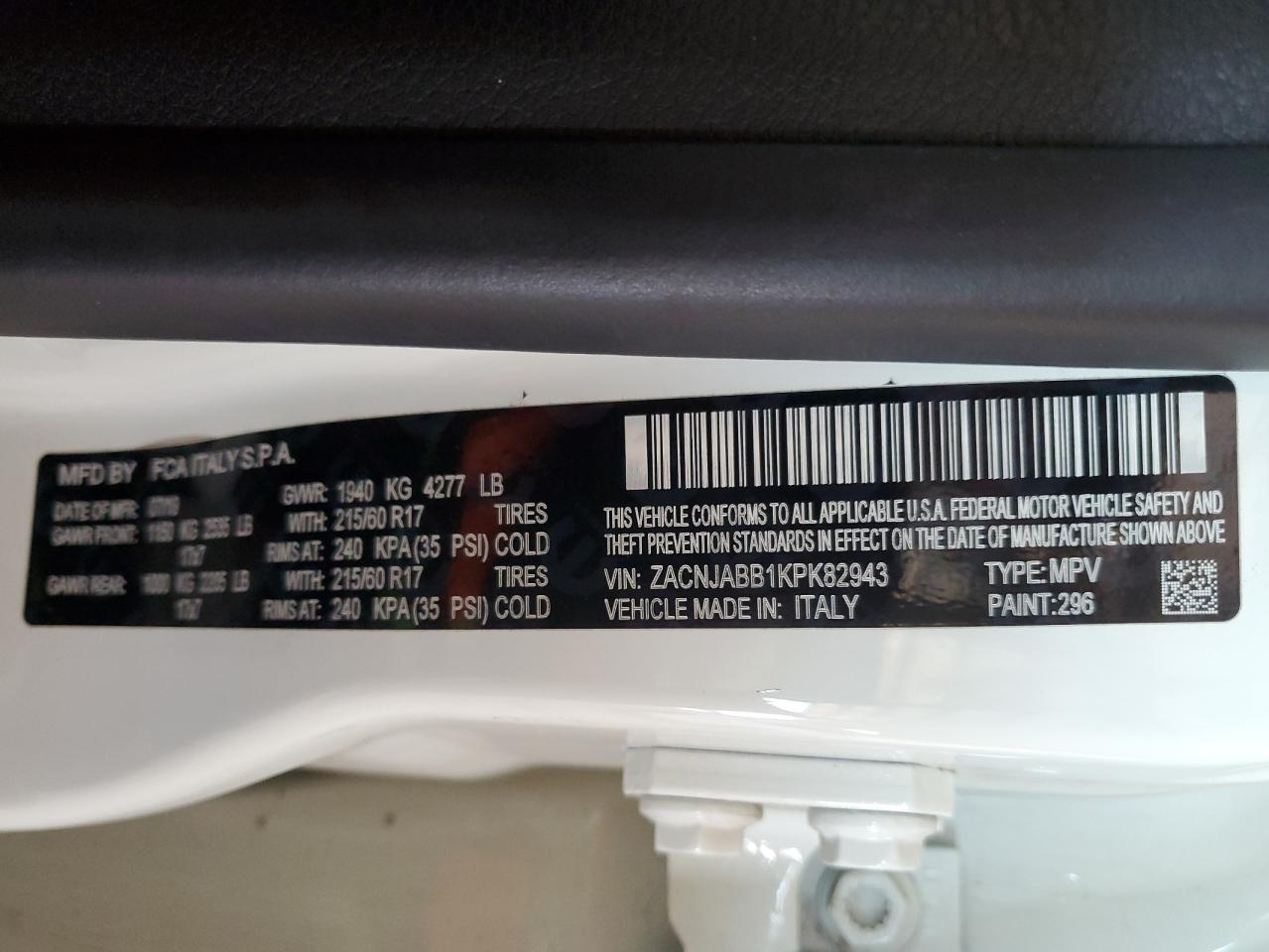 2019 JEEP RENEGADE - ZACNJABB1KPK82943, колір - Білий, 2.4, Бензин, із США