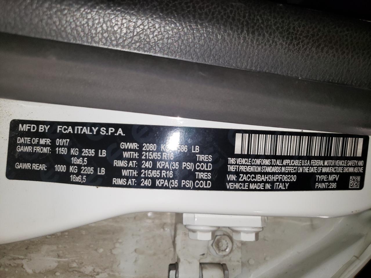 2017 JEEP RENEGADE - ZACCJBAH3HPF06230, колір - Білий, 1.4, Бензин, 4x4 з переднім приводом із США