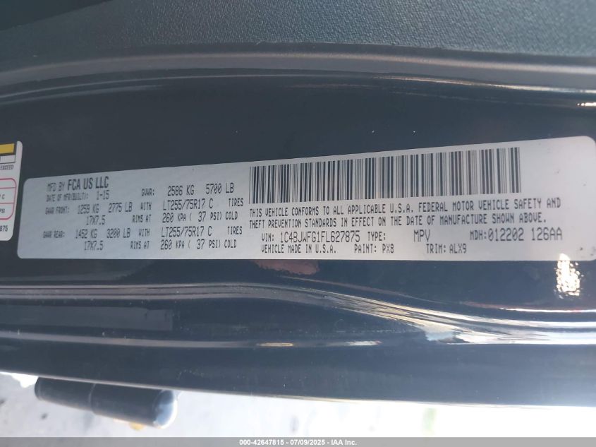 Колір ЧорнийЦиліндри 6Привід Повний привідVIN 1C4BJWFG1FL627875Стан СтаціонарноУшкодження Пожежа