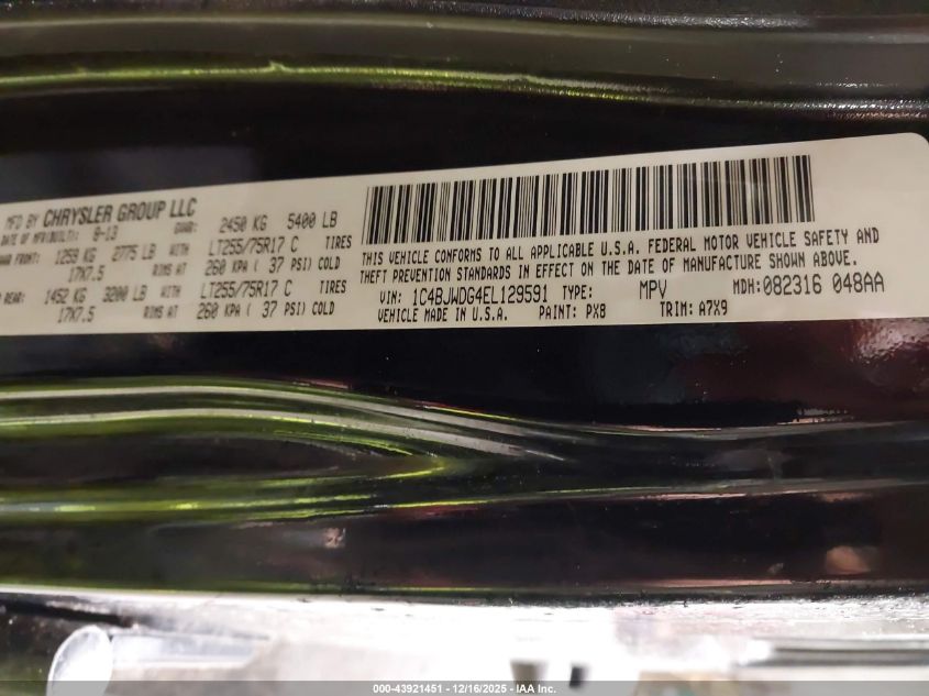 2014 JEEP WRANGLER - 1C4BJWDG4EL129591, колір - , 3.6, Бензин, Повний привід із США