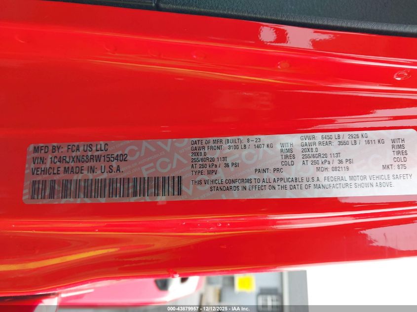 Колір ЧервонийЦиліндри 4Привід Повний привідVIN 1C4RJXN68RW155402Стан СтаціонарноУшкодження Вандалізм