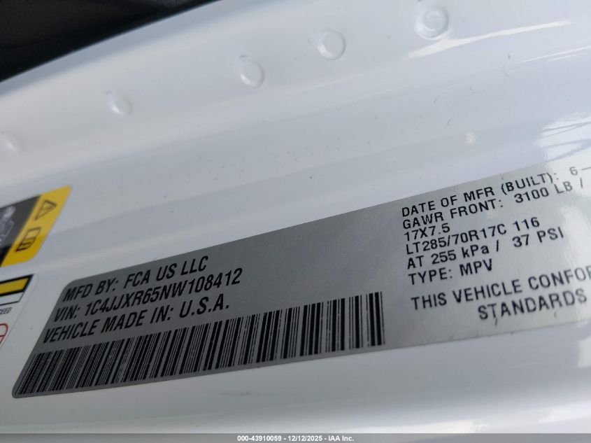 Колір БілийЦиліндри 4Привід Повний привідVIN 1C4JJXR65NW108412Стан Заводиться та їде (перевірено)Ушкодження Незначні
