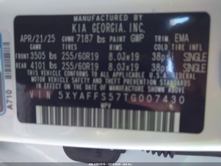 2026 KIA EV9 - 5XYAFFS57TG007430, колір - Білий, U, Електричний, Повний привід із США