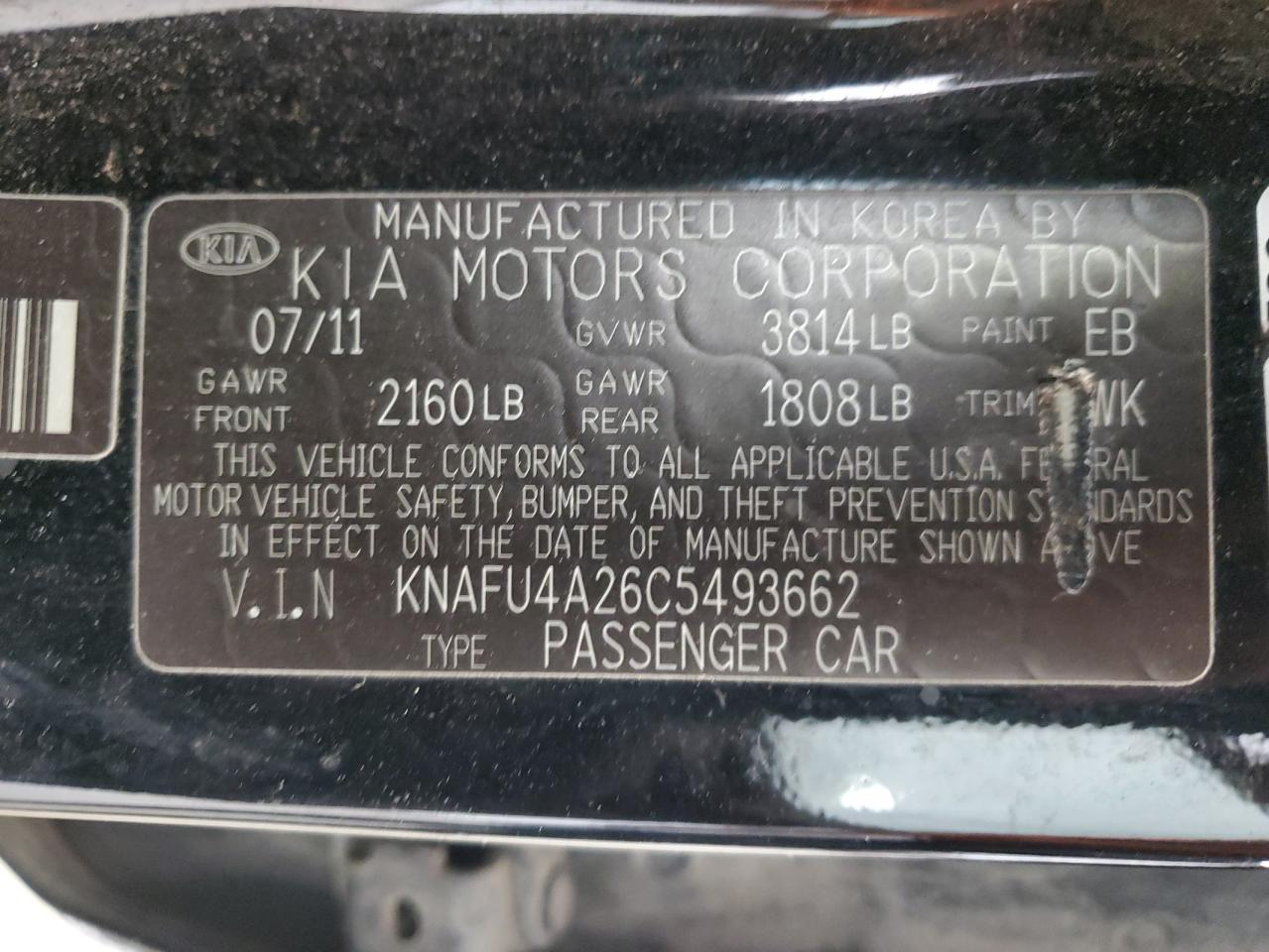 2012 KIA FORTE - KNAFU4A26C5493662, колір - Чорний, 2.0, Бензин, із США