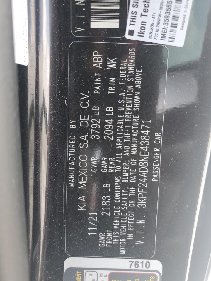 2022 KIA FORTE - 3KPF24AD8NE438471, колір - Чорний, 2.0, Бензин, із США