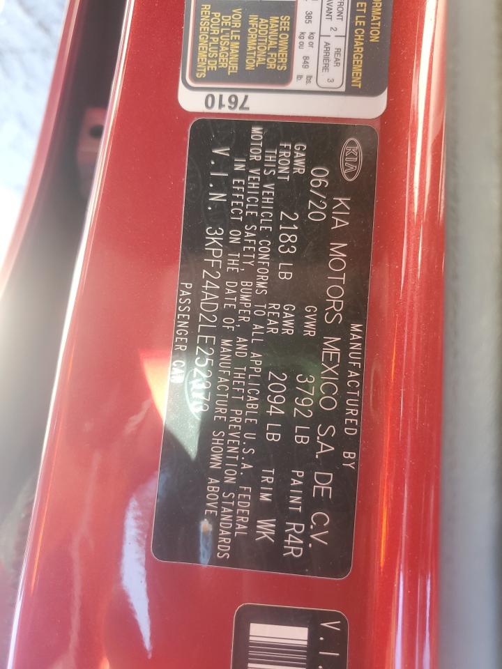2020 KIA FORTE - 3KPF24AD2LE252373, колір - Червоний, 2.0, Бензин, із США