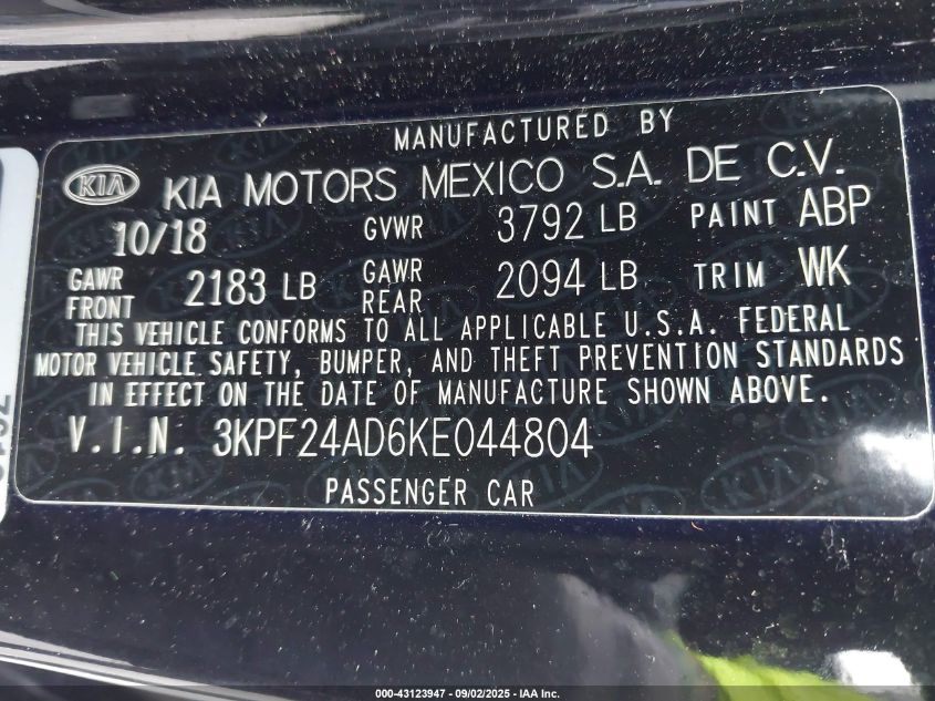 2019 KIA FORTE - 3KPF24AD6KE044804, колір - Чорний, 2.0, Бензин, Передній привід із США