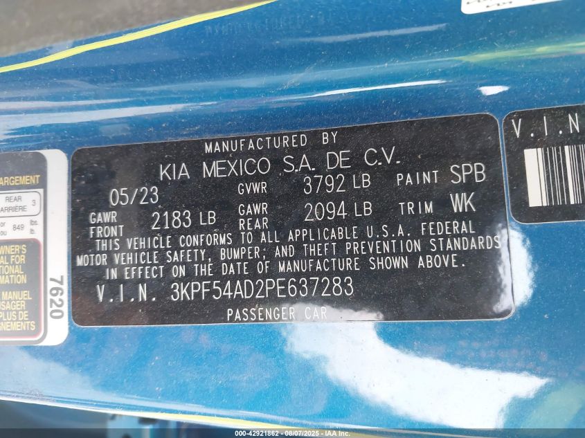 2023 KIA FORTE - 3KPF54AD2PE637283, колір - Синій, 2.0, Бензин, Передній привід із США