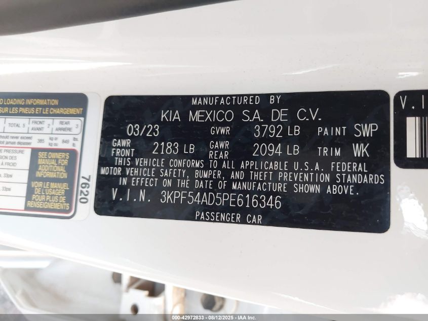 2023 KIA FORTE - 3KPF54AD5PE616346, колір - Білий, 2.0, Бензин, Передній привід із США
