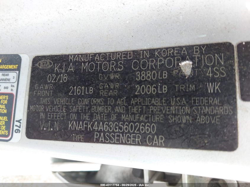 2016 KIA FORTE LX