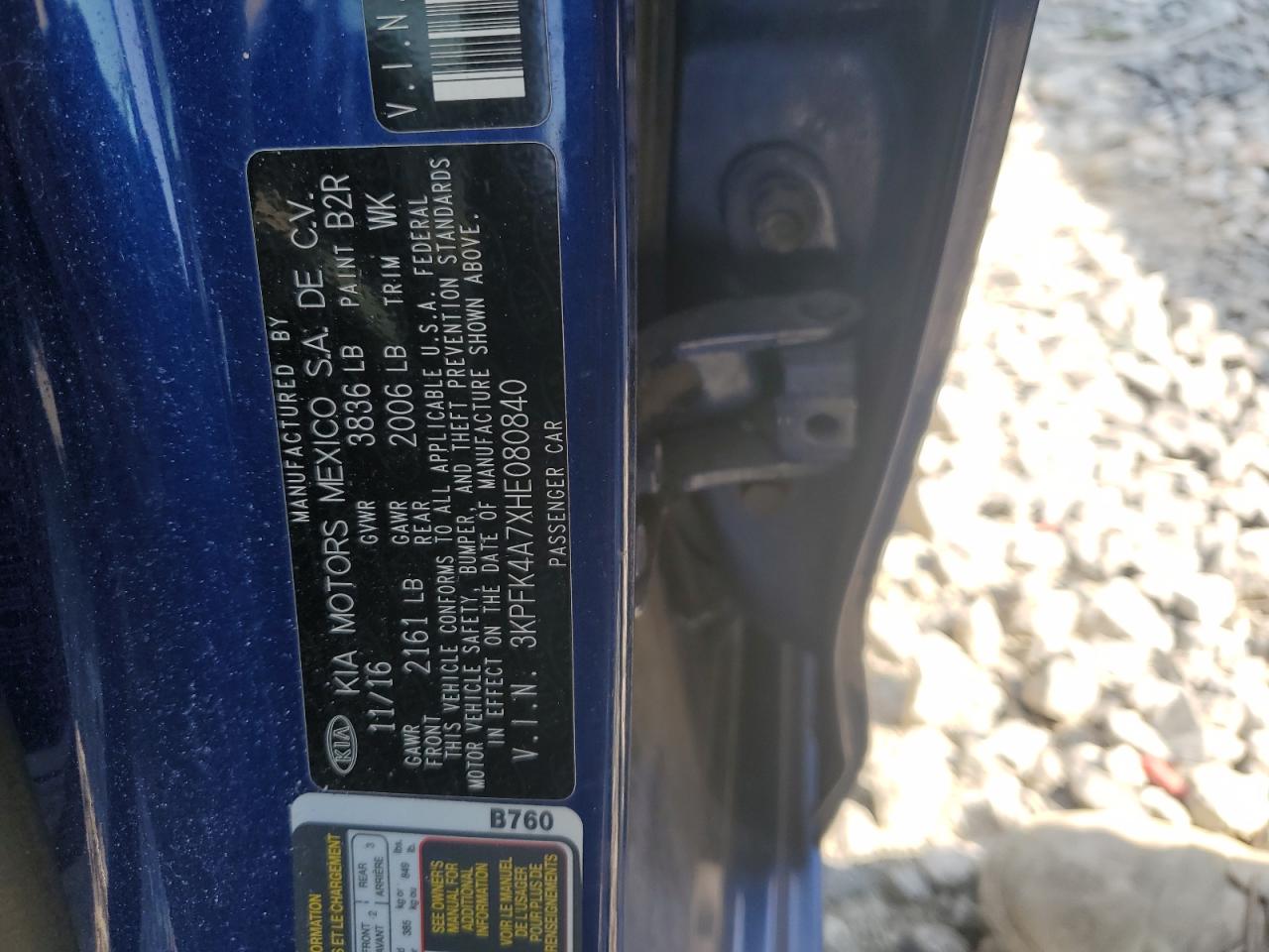 2017 KIA FORTE - 3KPFK4A7XHE080840, колір - Синій, 2.0, Бензин, із США