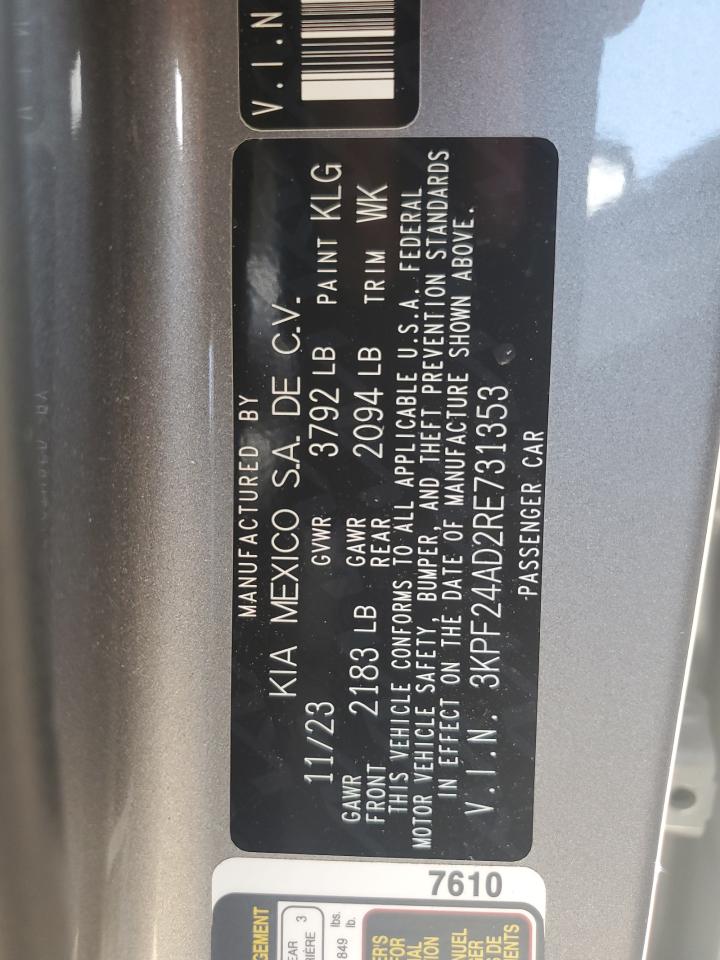 2024 KIA FORTE - 3KPF24AD2RE731353, колір - Срібний, 2.0, Бензин, із США