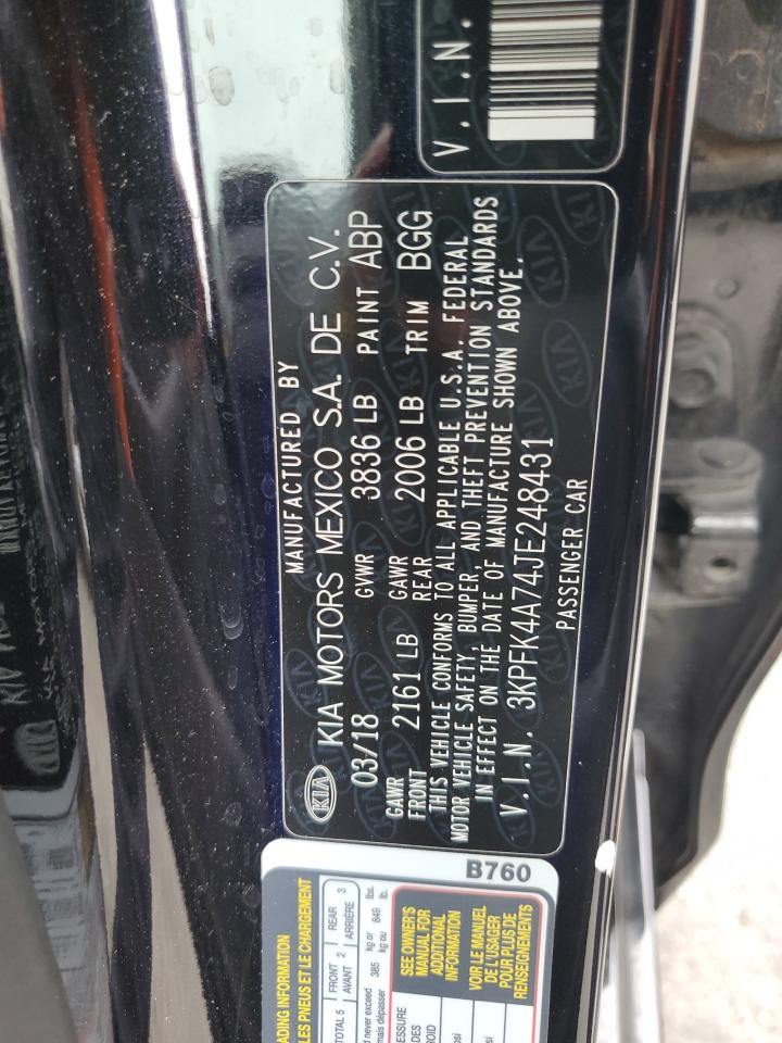 2018 KIA FORTE - 3KPFK4A74JE248431, колір - Чорний, 2.0, Бензин, із США
