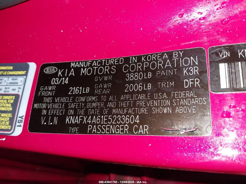 2014 KIA FORTE - KNAFX4A61E5233604, колір - Червоний, 1.8, Бензин, Передній привід із США