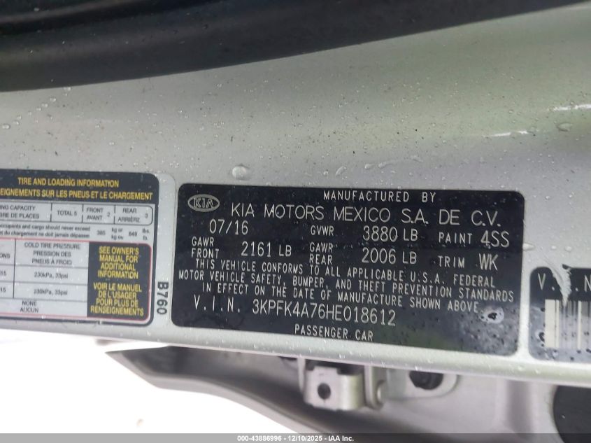 2017 KIA FORTE - 3KPFK4A76HE018612, колір - Срібний, 2.0, Бензин, Передній привід із США