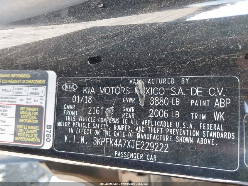 2018 KIA FORTE - 3KPFK4A7XJE229222, колір - Чорний, 2.0, Бензин, Передній привід із США