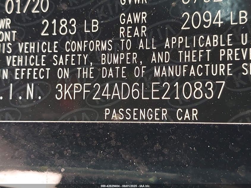 2020 KIA FORTE - 3KPF24AD6LE210837, колір - Чорний, 2.0, Бензин, Передній привід із США