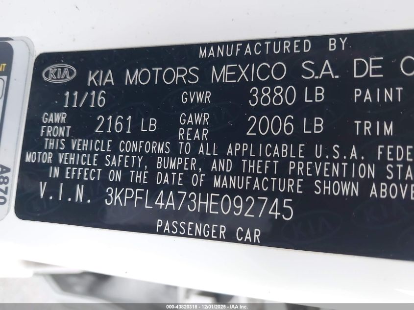 2017 KIA FORTE LX