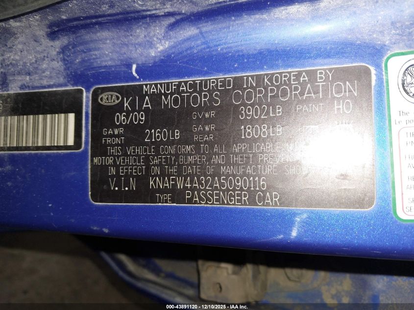 2010 KIA FORTE - KNAFW4A32A5090116, колір - Синій, 2.4, Бензин, Передній привід із США