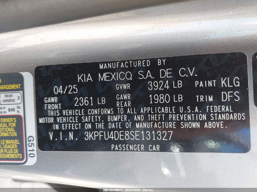 2025 KIA K4 - 3KPFU4DE8SE131327, колір - Сірий, 2.0, Бензин, Передній привід із США