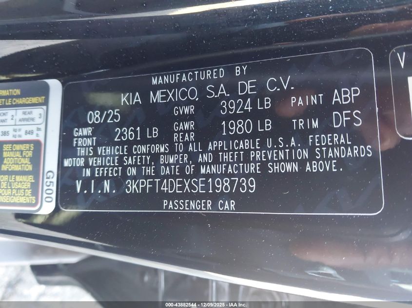 2025 KIA K4 - 3KPFT4DEXSE198739, колір - Чорний, 2.0, Бензин, Передній привід із США