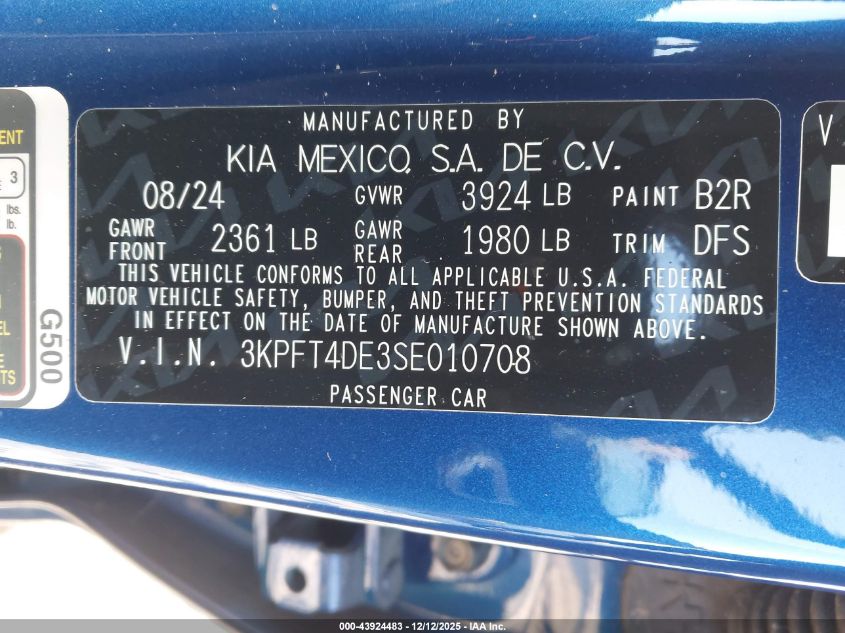 2025 KIA K4 - 3KPFT4DE3SE010708, колір - Синій, 2.0, Бензин, Передній привід із США
