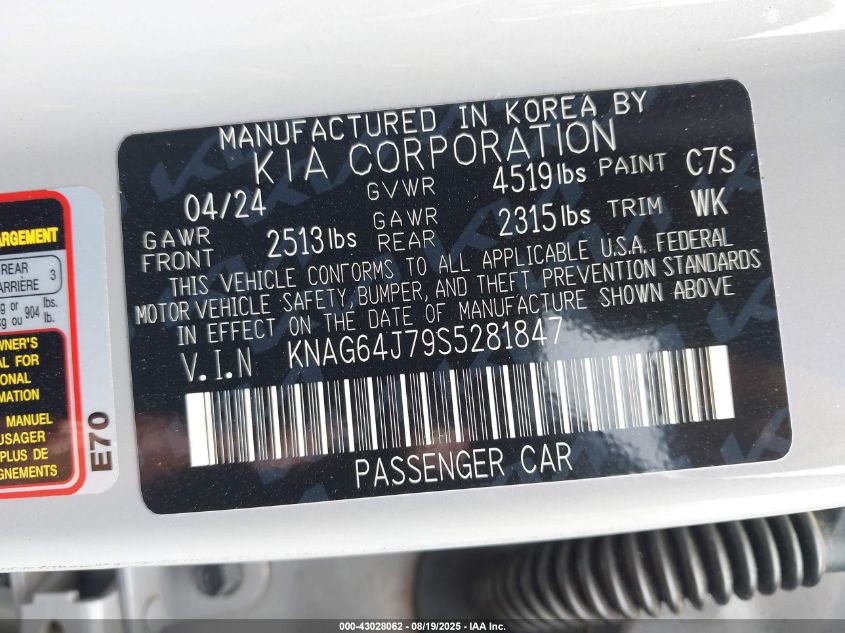 2025 KIA K5 - KNAG64J79S5281847, колір - Сірий, 2.5, Бензин, Повний привід із США