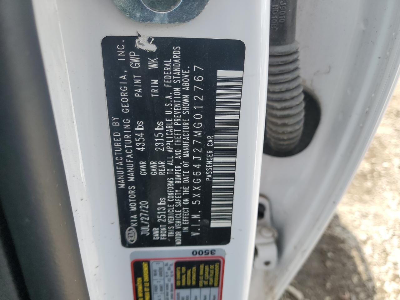 2021 KIA K5 - 5XXG64J27MG012767, колір - Білий, 1.6, Бензин, із США