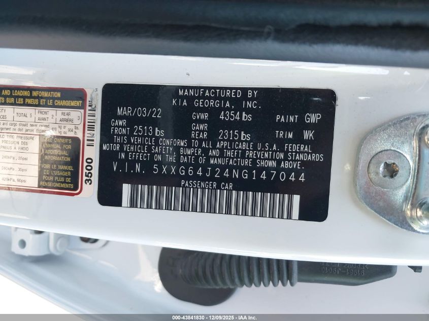 2022 KIA K5 - 5XXG64J24NG147044, колір - Білий, 1.6, Бензин, Передній привід із США