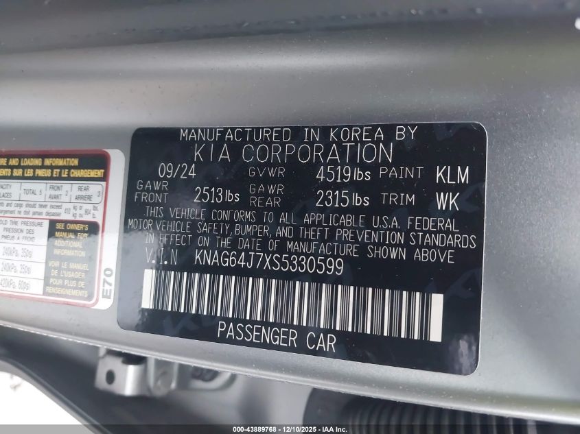 2025 KIA K5 - KNAG64J7XS5330599, колір - Сірий, 2.5, Бензин, Повний привід із США