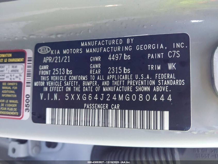 2021 KIA K5 - 5XXG64J24MG080444, колір - Сірий, 1.6, Бензин, Повний привід із США
